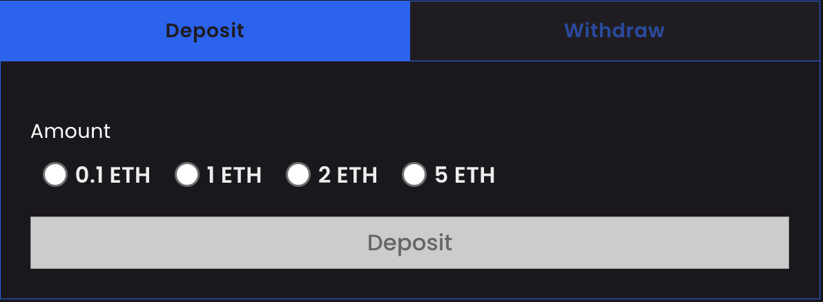 2) Once your wallet is connected, select how much you wish to deposit. Click on the "Deposit" button to proceed.