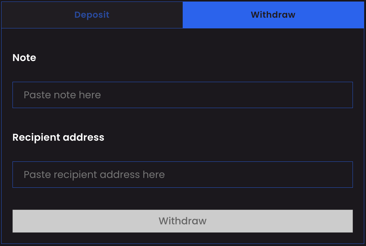 3) Paste the unique note you received when you made the deposit and the recipient's address.